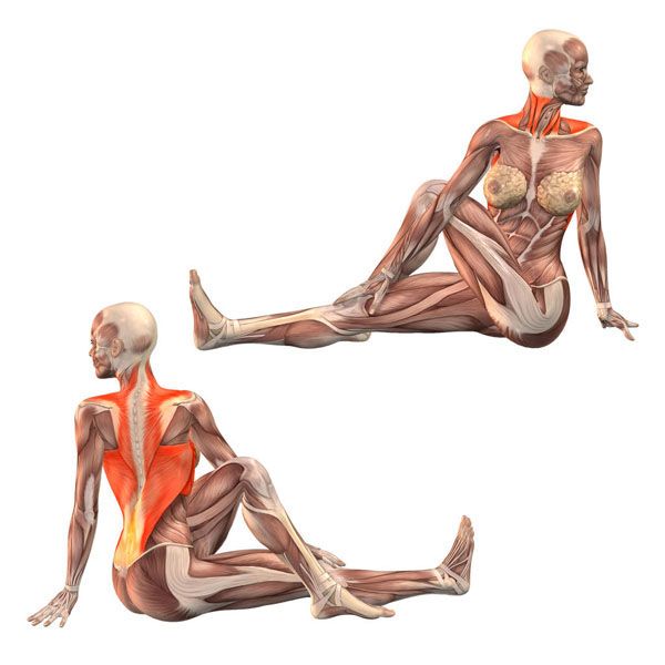 É muito importante salientar que a torção implica tração. Quanto maior for a extensão da coluna vertebral, mais fácil será respirar profundamente. Devemos alongar a coluna vertebral em movimento espiral, tendo em conta que a própria ação das forças opostas criadas entre o joelho e a mão ou o braço vai facilitar os processos do alongar da coluna e da torção do tronco.