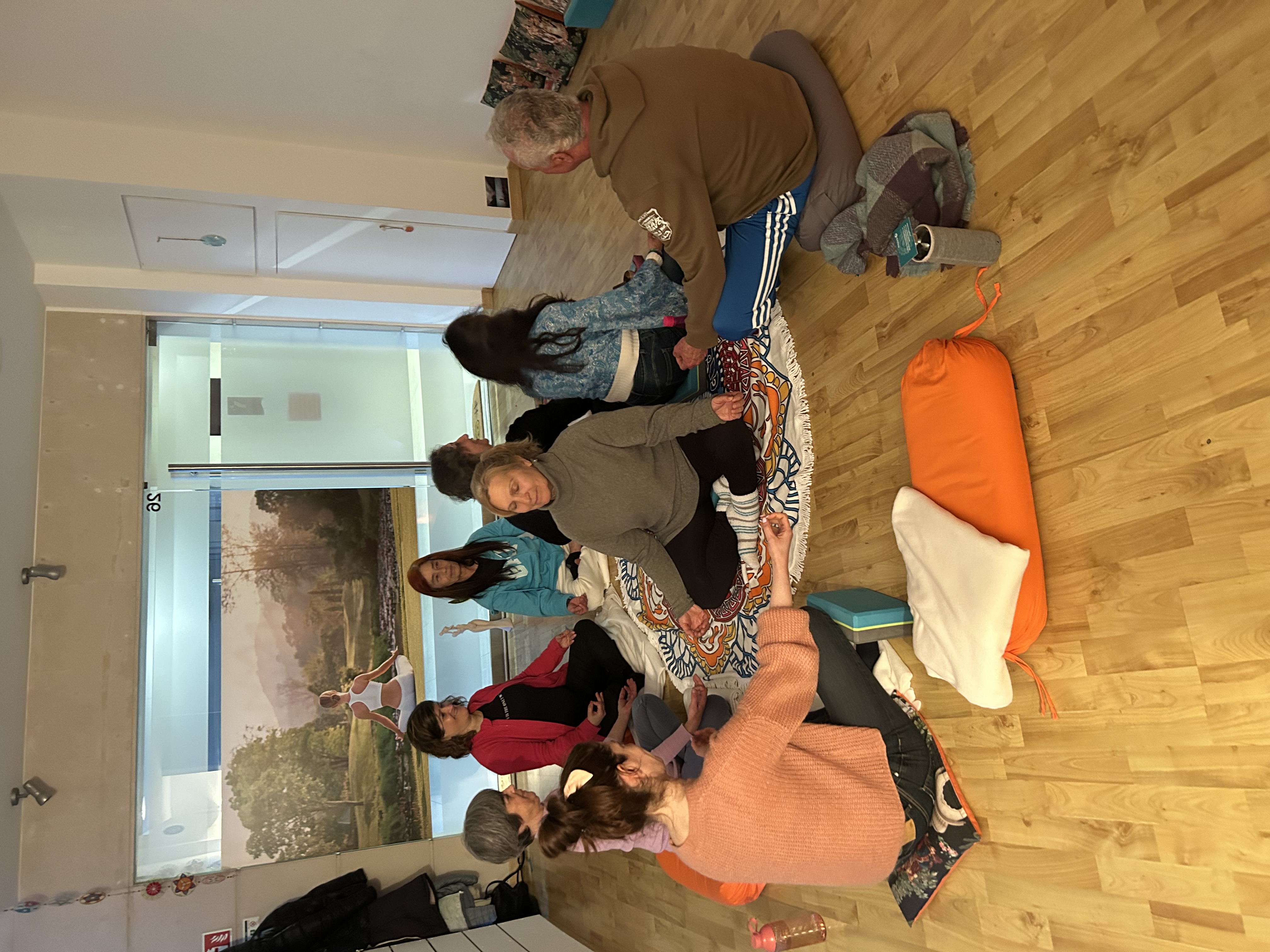 Sob a orientação de Paula Radhini, vamos formar dois círculos e entoar continuamente o OM, sentir a vibração em nós e a energia no grupo.